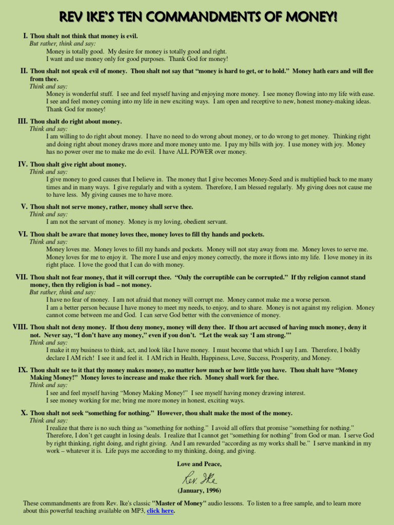 REV IKE DIX COMMANDEMENTS OF MONEY PLAYLIST